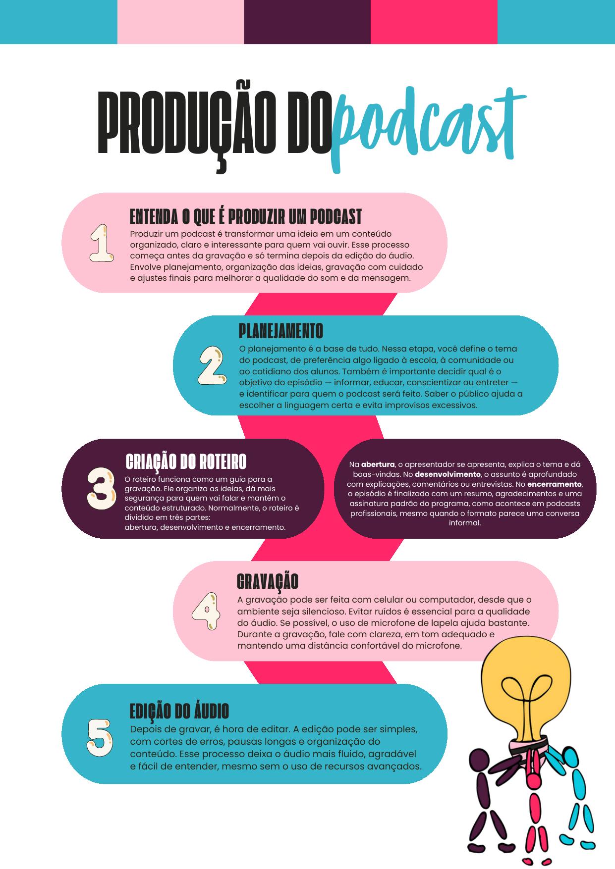 Cinco etapas que transformam ideia solta em episódio publicado.
