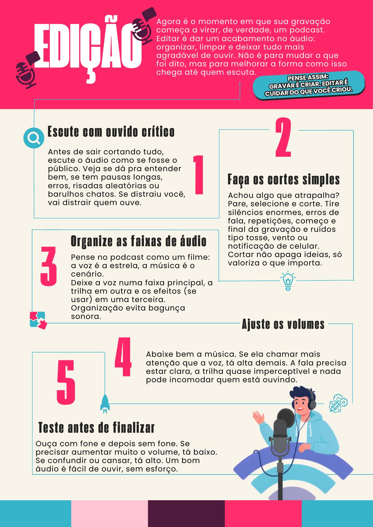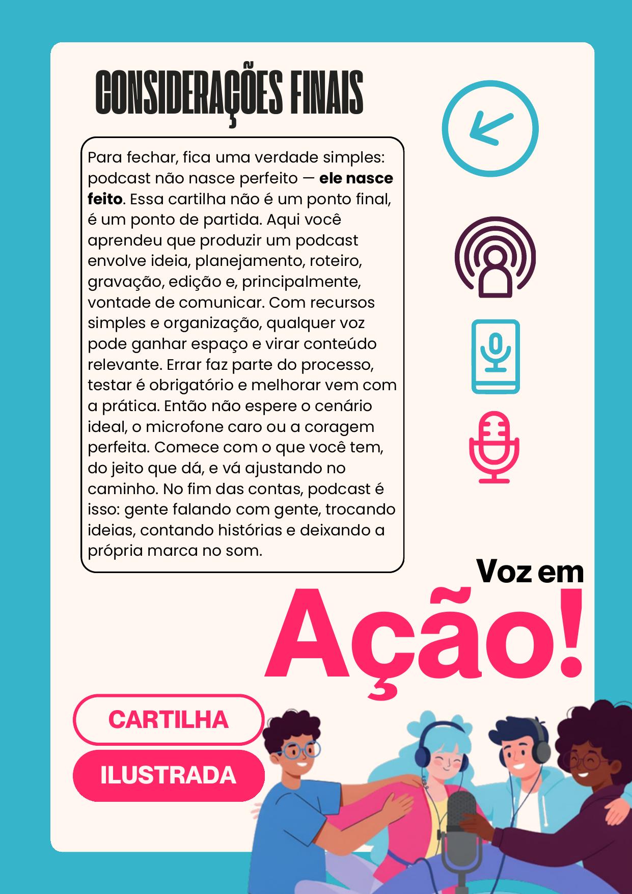 O mais importante é praticar, testar e encontrar o formato que funciona pra você. Cada episódio é um passo. Pega o microfone, respira fundo e grava.
